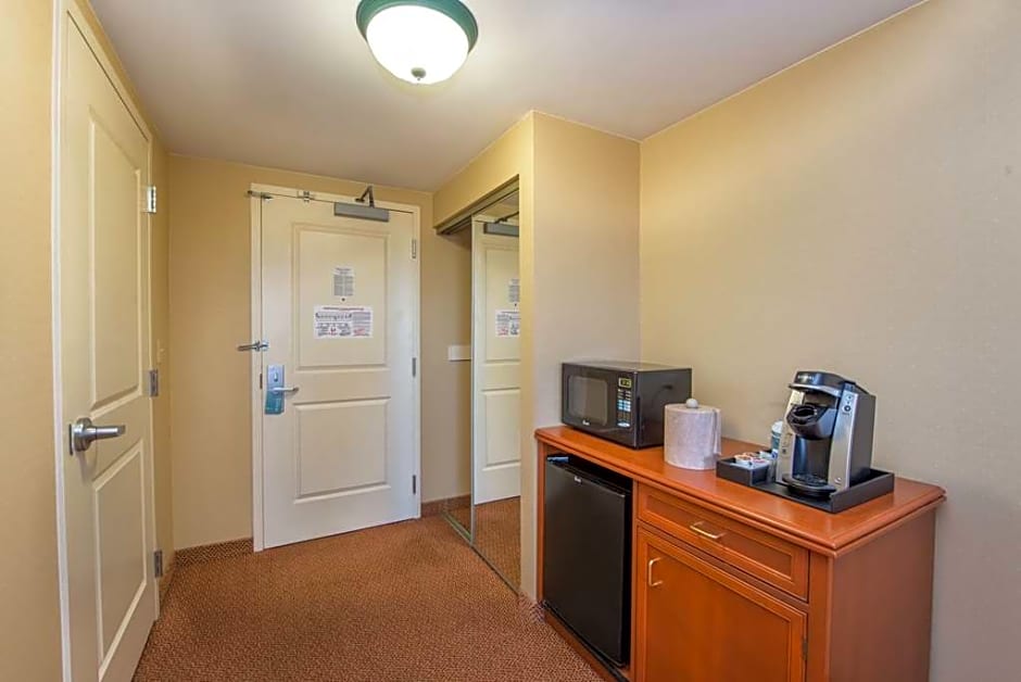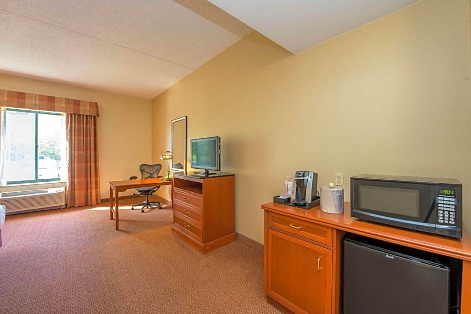 This room features a flat-screen TV, a microwave, and a refrigerator.